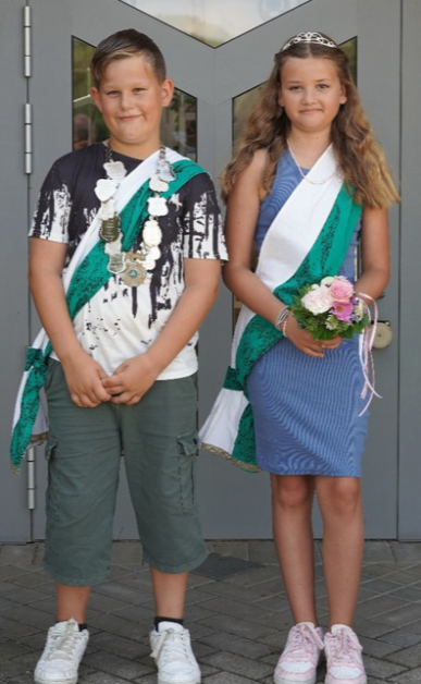 Kira und Jason bilden das neue Kinderkönigspaar bei den Feldbauern. Am vergangen Samstag feierten die Feldbauern auf dem Gelände der Viehvermarktung (VVG) Münsterland (An den Bahngleisen 18), ihr Kinderschützenfest. Nach einem hart umkämpften Vogelschießen hieß das neue Kinderkönigspaar Kira Evenkamp und Jason Ruchatz. Ihr Jubiläum feierte Nadine Ruchatz, die Mutter des Kinderkönigs. Sie regierte vor 25 Jahren. Heike Brunsmann und Andreas Regeling standen vor 50 Jahren an der Spitze der Feldbauern.